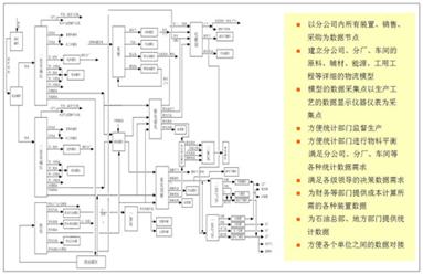 现在有的的企业统计管理系统是根据企业具体情况,大部分都是按单点、按表等对装置生产情况、产销存、各种消耗、技经指标、装置生产能力等等进行管理,当需要采购数据、出厂数据、销售数据、厂互供数据、生产数据等统计数据的时候,系统按点、按表的形式录入生产管理数据,那么数据使用者只能看到点、片面的数据,不能看到全厂、全公司的所有物流走向的所有数据。且这样的数据是孤立的数据,不能为企业决策者提供全面决策数据。而我公司开发的“综合统计管理系统”把全厂的所有采购、生产、消耗、销售、库存等所有点的数据用物流的思想连接成网,打破了以往企业按单点、单表的生产统计管理模式,用物流网、信息流的概念管理企业的生产。这样数据使用者可以把全企业物料走向尽收眼底,生产物流网上的任意数据点的所有来源与去向清晰明了。不但能为数据使用者提供企业全面、整体的反映企业生产情况的各种产、销、存及技术经济指标等生产物流统计数据,还能为企业领导的管理、决策提供强有力支撑。而且系统可以自动适应企业组织机构调整、代码变换。